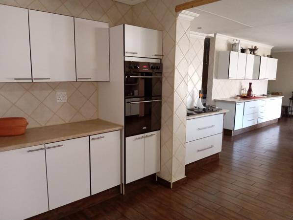 This versatile property offers a spacious 3-bedroom, 2-bathroom home (main en suite) with an open-plan lounge and dining area featuring underfloor heating. The large kitchen is well-equipped with ample cupboard space, a gas stove, and an electric oven. Additional features include a built-in braai, separate scullery/laundry, and a cozy study corner. The home has built-in cupboards throughout, with a combination of tiled and laminated flooring, and a double garage with direct access into the house.