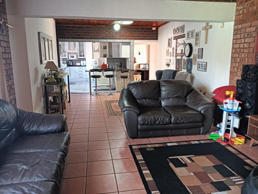 This home boasts of allowing ample natural light in the living spaces. The open plan living rooms, dining room, and kitchen seamlessly flow onto an enclosed patio with a built in braai. making it the ideal spot for entertaining guests, and enjoying the warm summer days while overlooking the garden and sparkling pool.