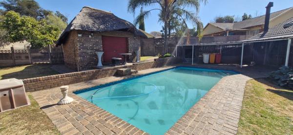 A spacious front area provides the ideal space for a home office, while the entertainment amenities include a swimming pool, built-in braai, and a small lapa. The enclosed tandem carport comfortably accommodates up to three vehicles.