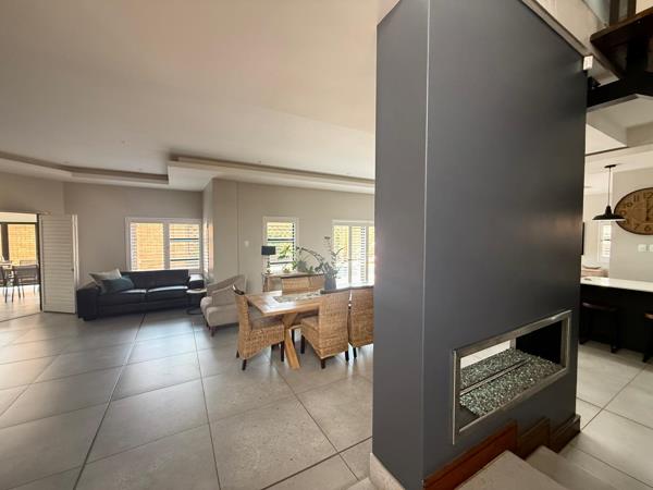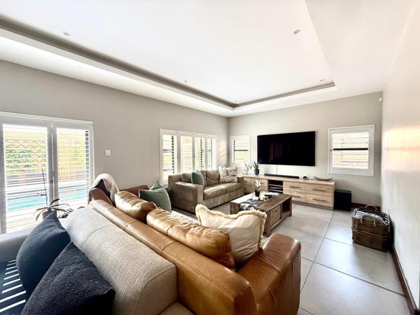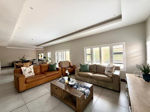 Practicality and security are at the forefront of this property. All windows are fitted with steel shutters, providing peace of mind without compromising style. Three generous garages, including space for a caravan, ensure ample parking and storage. The home is fully off the grid, powered by 18 solar panels, a 10kVA inverter, and a 30kVA battery system, while a borehole further enhances self-sufficiency. Coupled with the estates top-tier security, independence and safety are guaranteed.