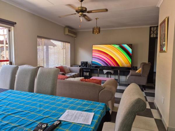 Modern 3 Bedroom and 2 bathroom with an an extra room on the outside in a secured neighborhood. It has a lounge, dining room and a well kept garden. It has cameras, electrical fence and solar if you choose to take it with the house. It''s a big house with spaced rooms. Call to view