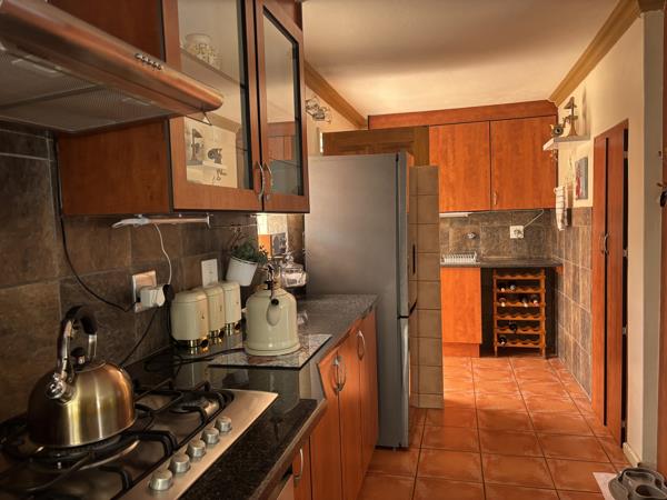 Upstairs, you''ll find three bedrooms and two bathrooms, with the master suite boasting an ensuite and a walk-in closet. A stunning balcony overlooks the beautiful garden, providing a serene escape. Additionally, there is a separate one-bedroom flat featuring open-plan living, a kitchen equipped with a stove, and a bathroom. The property also includes double garages, carports, an inverter with two batteries, and four CCTV cameras for added security.