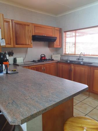This secure 4-bedroom, 2-bathroom home, with one en-suite, is located in Del Judor Ext 2, Witbank. It features a well-maintained exterior, red tiled roof, and a large fenced garden with a refreshing pool. A paved driveway offers three garages and additional parking. Inside, an open-plan lounge, dining room, and a functional kitchen with warm-toned wooden cabinetry and a gas hob await. Enjoy a dedicated study, laundry, and built-in braai with a bar. Enhanced by solar panels, a battery inverter system, water tanks, fibre, CCTV, and an alarm, this home ensures comfort and peace of mind.