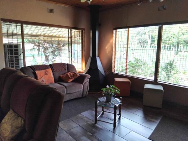 The main home boasts an open-plan TV room with a cozy fireplace, a spacious lounge and dining area, and a modern kitchen with ample cupboard space, a gas hob, and a separate scullery. It offers 4 bedrooms and 4 bathrooms (2 en suite), with the main bedroom located upstairs, as well as a guest toilet. Additional features include a sauna room with its own shower and a laundry area.