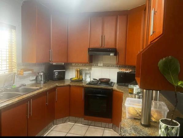 Nestled in a tranquil cul-de-sac in Del Judor Ext 4, Witbank, South Africa, this inviting 3-bedroom, 2-bathroom home offers comfortable family living. The property features a durable brick exterior, established landscaping, and a welcoming paved entrance. Inside, a spacious, light-filled living room with a modern feature wall seamlessly connects to the dining area. The functional kitchen provides ample cabinetry and a built-in oven and hob. Bedrooms are well-appointed, complemented by two bathrooms, including a modern one with marble-look tiles, a walk-in shower, and a separate tub. Enjoy outdoor moments on the covered patio overlooking a private garden. A double garage completes this appealing residence.