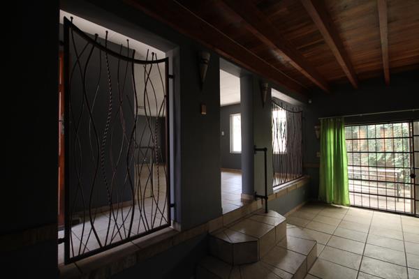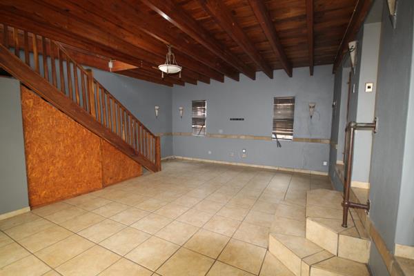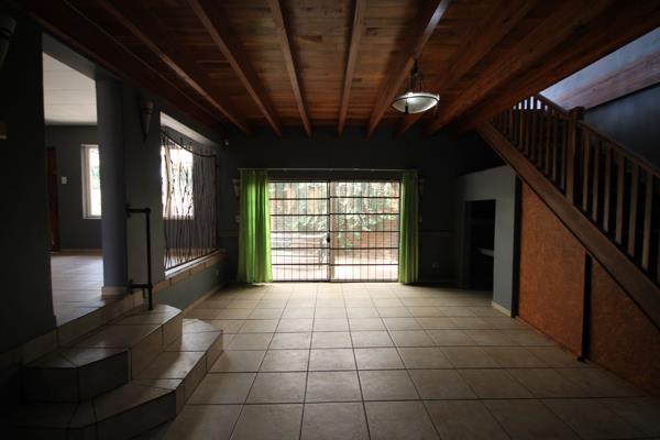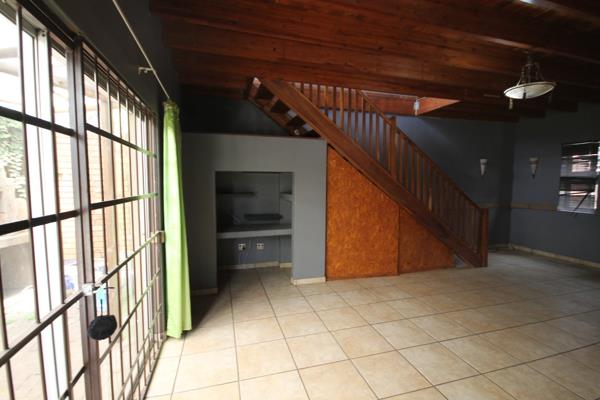 Lounge area, dining room and TV room with a sliding door opening to a patio and a built-in braai