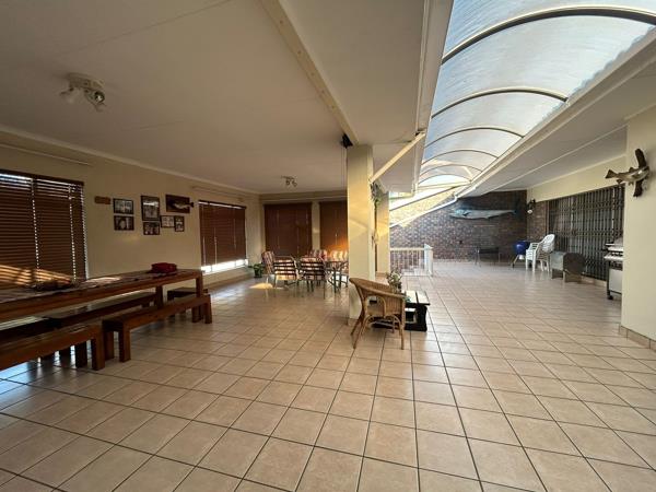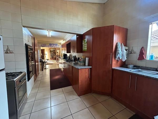 Offers 4 bedrooms all fitted with build in cupboards (main bedroom with walk in cupboard), 2 full bathrooms with the main on suite, open plan living areas, kitchen with granite tops and scullery area, study with shelfs, guest toilet, bar area opening into the entertainment area for family gatherings, pool for those hot summer days, outside room and bathrooms, 4 garages and carport parking, established garden.