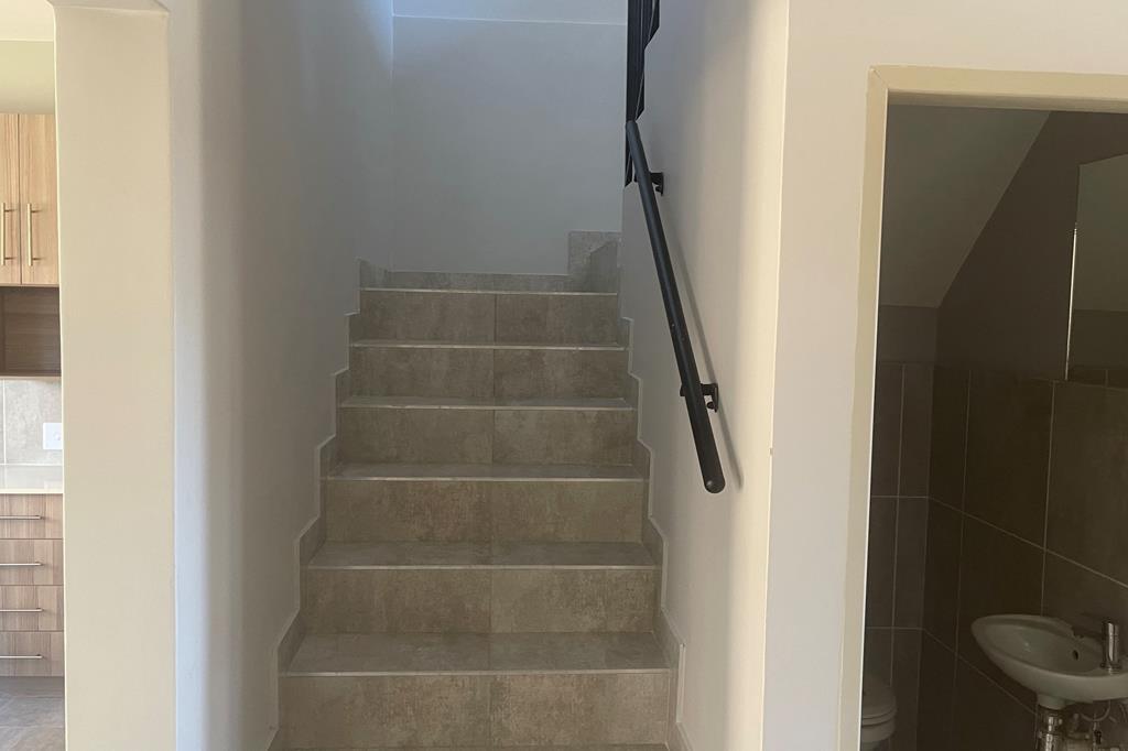 This double story apartment offers 3 bedrooms, master bedroom is en-suite, bathroom with a shower, separate toilets including a quest toilet, living area, dining area and a nice kitchen with wooden cupboards.