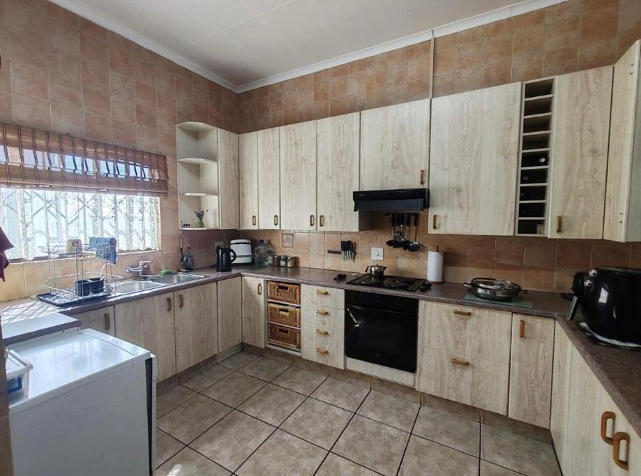 The well-appointed kitchen offers ample cupboard space and has a dedicated connection for a dishwasher, making everyday living both functional and convenient. It flows into the living and dining areas, creating a central hub for family life. The dining area leads down to a lower-level sleeperwood bar, and from there, a sliding door connects directly to the lapa, which features a built-in braai, bar, and sound systemthe ultimate indoor-outdoor entertainment space.