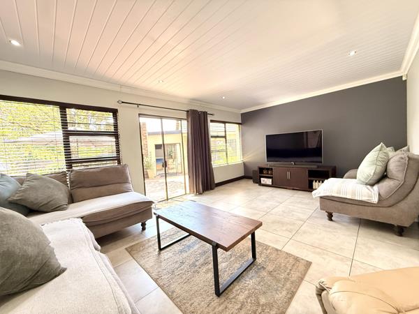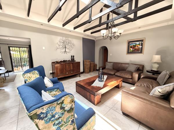 Beyond the main residence lies a separate, dream entertainment area. This dedicated space includes a lounge, a jacuzzi, a built-in bar complete with a fridge, and even a snooker table (all included!). Sliding doors open this area up to the impressive boma, the sparkling pool, and the beautifully landscaped backyard. The outdoor space is complete with a handy dog bath and an outside braai area perfect for summer entertaining. For ultimate peace of mind, the house is equipped with a state-of-the-art solar system and over 10,000 litres of backup water.