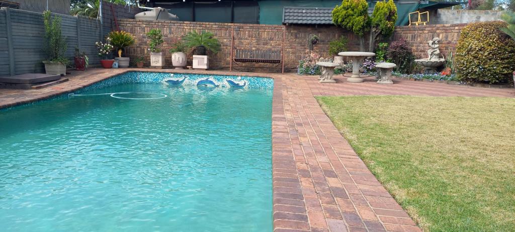 The beautiful braai area is covered, and you will definitely spend lots of time with your family there and entertaining your friends. You will most definitely spend hours of time in the massive sparkling pool while the kids will be playing on the green lawn area. The pool area also has a fence with a gate that can closed to ensure the safety of your kids and pets.