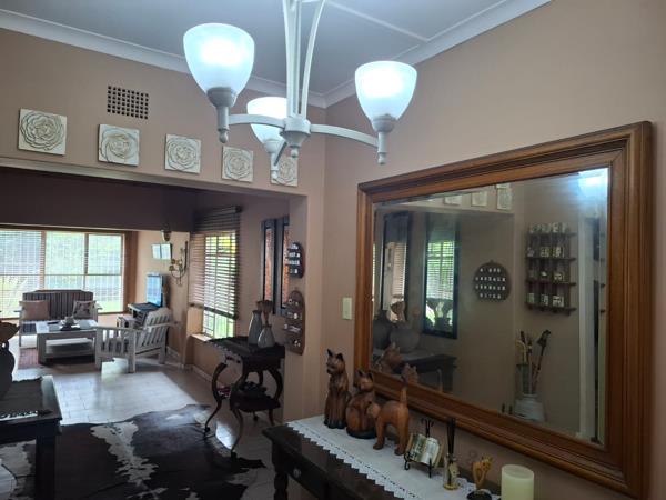 Seamless indoor-outdoor flow leads to a breathtaking entertainment patio with adjustable roof shutters and a built-in braai ideal for year-round enjoyment. The garden is nothing short of enchanting lush green lawns, mature trees, a sparkling pool, and a trampoline for endless family fun.