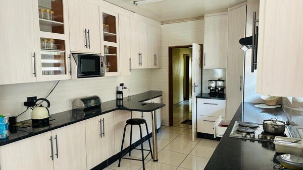 Practicality meets style with built-in cupboards that offer ample storage, maintaining an organized and clutter-free home. The built-in braai enhances the entertainment potential, perfect for hosting friends and family throughout the year. This remarkable property invites you to experience a harmonious blend of space, comfort, and security, making it an ideal family sanctuary.
