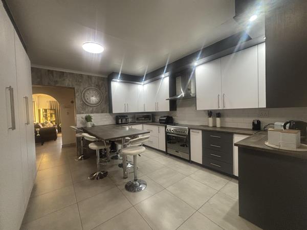 This stunning property is the ideal family home. It features a modern kitchen complete with a separate scullery and laundry room. The spacious living, dining, and entertainment areas include a built-in braai and bar, seamlessly connecting to an outdoor braai area and swimming pool.