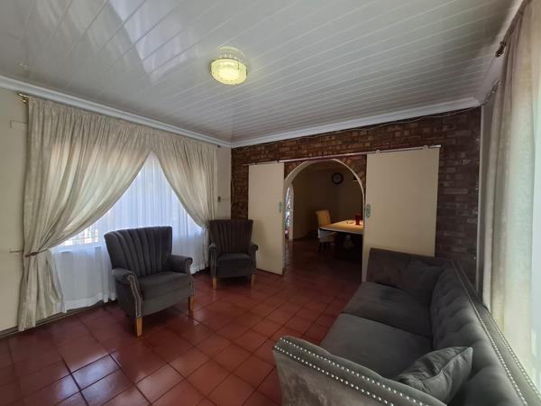 Adjacent to the home is a spacious entertainment room with a built-in braai, opening to both the lush garden with mature trees on one side and a sparkling swimming pool on the other the ultimate setting for hosting family and friends.