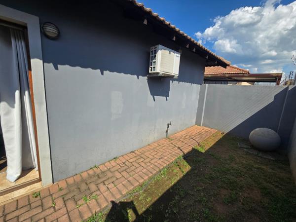 The property offer 3 well sized bedrooms with build in cupboards 2 rooms have air conditioner installed, 2 bathrooms main bedroom on-suite with a corner bath, basin and loo, open plan kitchen with ample cupboards and scullery. Living area fitted with an air conditioner for those hot days! Built in braai. Single garage which you can drive through. The bonus on the property is that it has water back up of 2000 litre JoJo tank with pump and a generator switch over.