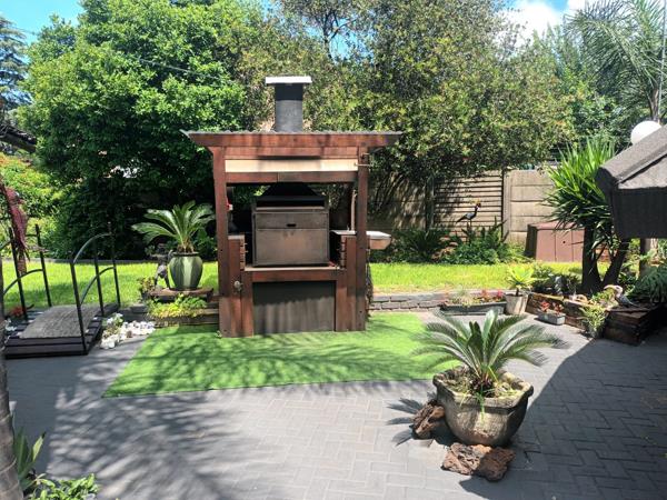 The backyard is an entertainers paradise, complete with a lapa featuring a built-in bar, a sparkling pool, and a built-in braai, perfect for hosting gatherings or simply relaxing in your own private oasis. The established garden is both beautiful and pet-friendly, making it an ideal retreat for the entire family.