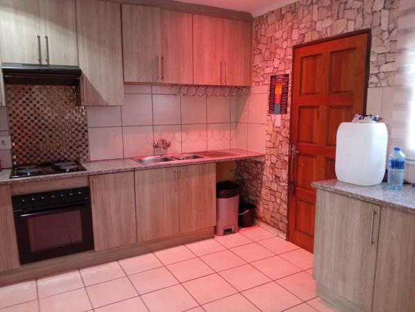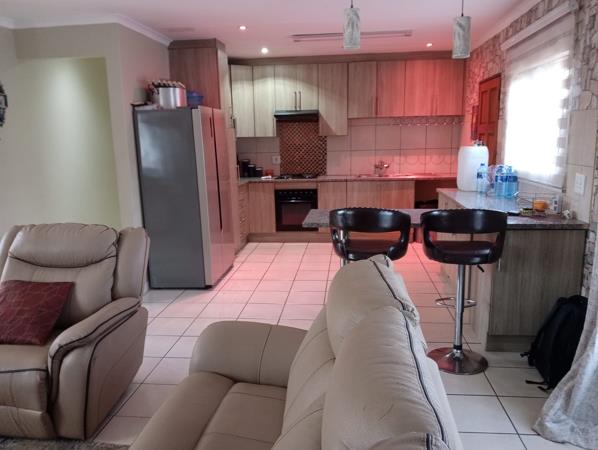 This charming home offers comfortable family living in a secure and sought-after neighbourhood. It features 3 spacious bedrooms with built-in cupboards and 2 bathrooms, including a main en suite. The open-plan living area flows seamlessly into a modern kitchen with ample cupboard space and tiled floors throughout.