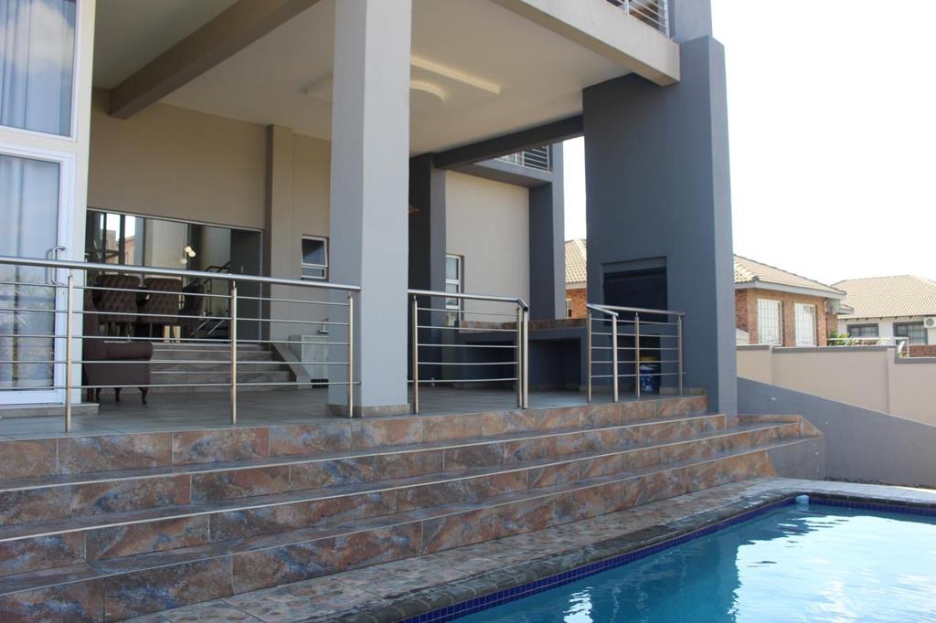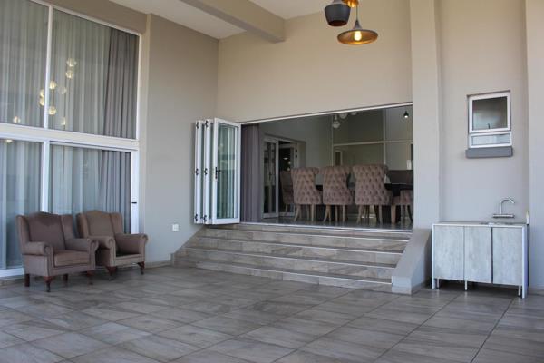 Downstairsfeatures two spacious bedrooms, formal and pajama lounge and an open-plan layout that flows effortlessly into a large entertainment patio. Thebuilt-in braai areaoverlooks asparkling swimming pool, creating an inviting space for hosting family and friends.
