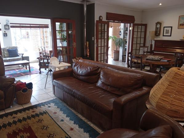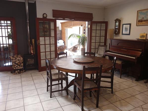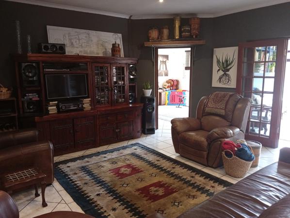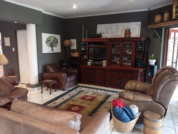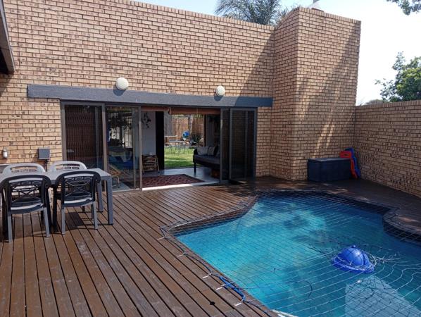 The home features open-plan living with a dining area, lounge, TV room, and an entertainment area with a built-in braai that flows seamlessly onto the pool area and 2 studies.