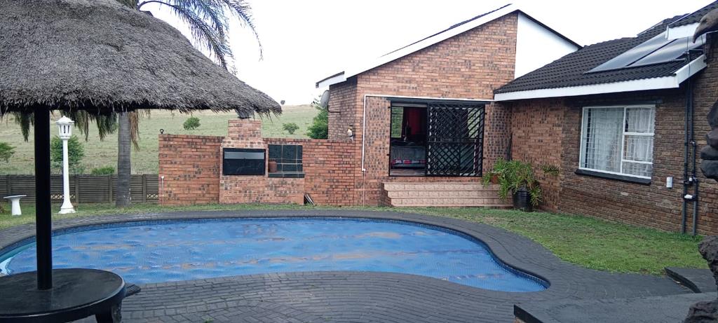 Outside is an entertainent area, which includes a sparkling, solar heated swimming pool and a built in braai, gazebo and the most magnificent view