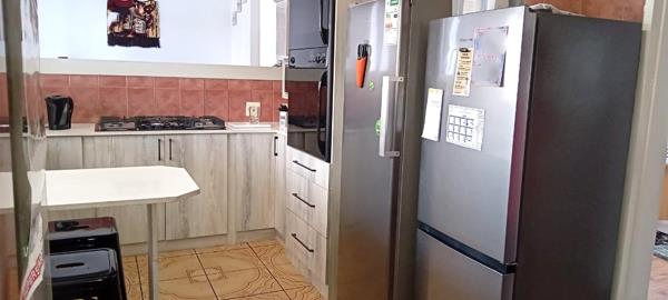 Beautiful, newly done practical kitchen with Caesar stone table tops, gas stove, and a double electric oven and lots of cupboard space