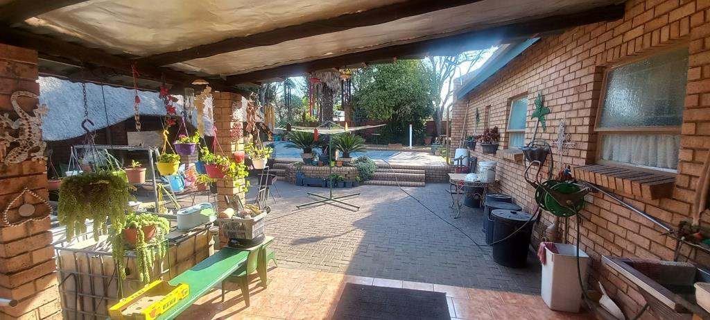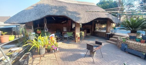 Lapa with a built-in braai area with a view of a garden