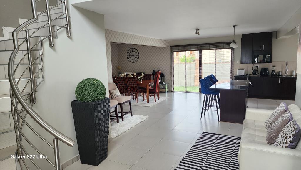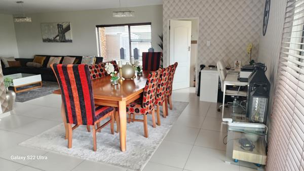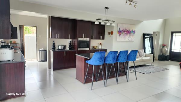 This beautiful 4-bedroom home is located in a secure and well-maintained estate, offering peace of mind and a comfortable lifestyle for your family. The house features a spacious double garage, ideal for safe parking and extra storage. Each bedroom is generously sized, with the main bedroom boasting an en-suite bathroom. The open-plan living and dining areas flow seamlessly into a modern kitchen, perfect for entertaining or family gatherings. Conveniently situated not far from the estate''s entrance, the property offers quick access to the main road, nearby supermarket, and shopping complex, making everyday errands easy and efficient.