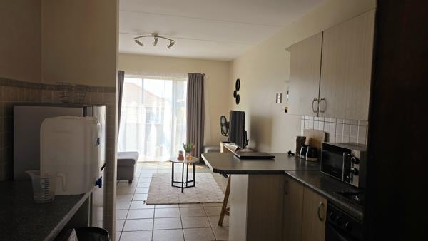 This neat 2-bedroom, 1-bathroom flat is situated in a secure, well-maintained complex, offering comfort and peace of mind. The open-plan living and kitchen area creates a welcoming space for relaxation or entertaining, while both bedrooms feature built-in cupboards for convenient storage. The bathroom is modern and functional, with a bath and shower combination. Ideal for small families, couples, or professionals, the complex also provides 24-hour security, access control, and ample parking. Conveniently located near schools, shops, and transport routes, this flat offers both safety and convenience.