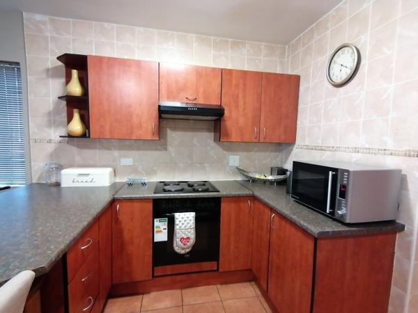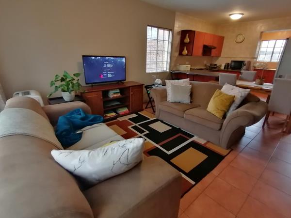 This charming 3-bedroom house is situated in a secure, gated complex with 24-hour security, ensuring peace of mind for its residents. The home features two bathrooms, one of which is an ensuite attached to the master bedroom. The open-plan design seamlessly integrates the kitchen and lounge area, creating a spacious and welcoming living environment. With a single garage for convenient parking and additional space for storage, this house is also pet-friendly, making it an ideal home for families with pets.