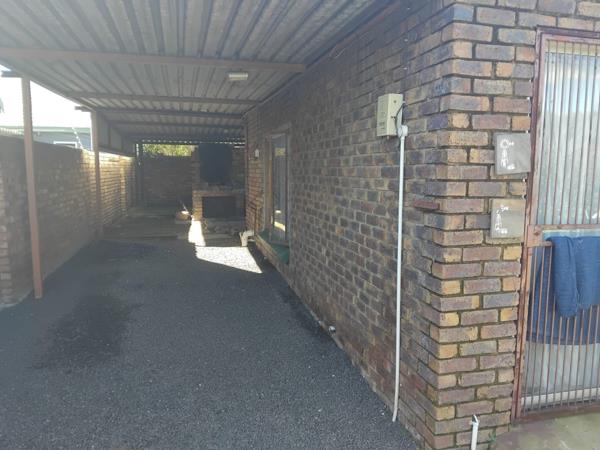 Double carport secure, covered parking with extra space for storage as well as external built in braai.