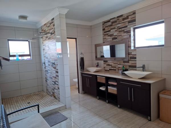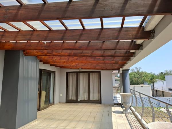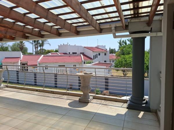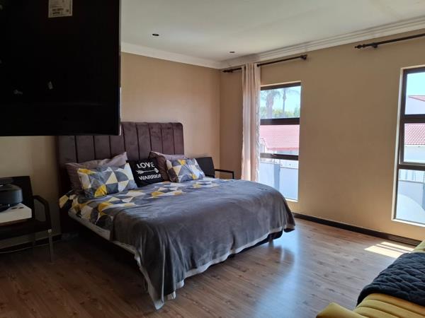 This lovely 7 bedroom house has 8 bathrooms and 2 garage. It has a spacious kitchen that provides open access to the living room. This property consists of a home gym and a small jacuzzi near the braai area. Its so peaceful because its in an Estate that is just within a kilometer to the Mall and surrounding schools.