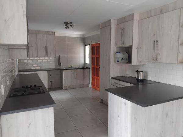 Open-plan living area and a beautiful kitchen with ample cupboard space plus laundry