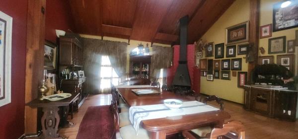 Cozy dining area with traditional fireplace