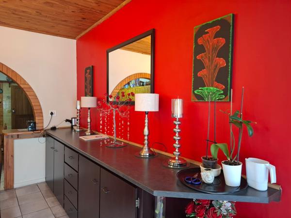 Entertainment room: Featuring a kitchenette with gas stove, built-in braai, and stack windows that open to a picturesque garden the perfect setting for hosting.