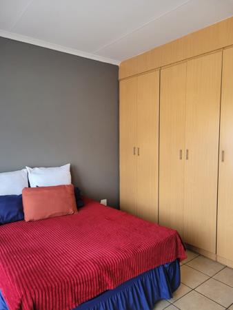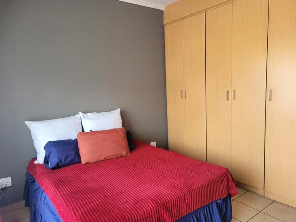 This is an excellent 2 bedrooms, 2 bathroomed unit in the very secure complex in a very safe and secure comex.The main bedrooms (ensuite) has a beautiful balcony. Both bedrooms are upstairs, while ground floor has an open plan lounge and kitchen. It has a Hollywood double garage.