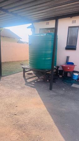 Outside, the double carport provides secure parking for two vehicles. A JoJo tank is installed for water storage, offering peace of mind during dry seasons or water outages.