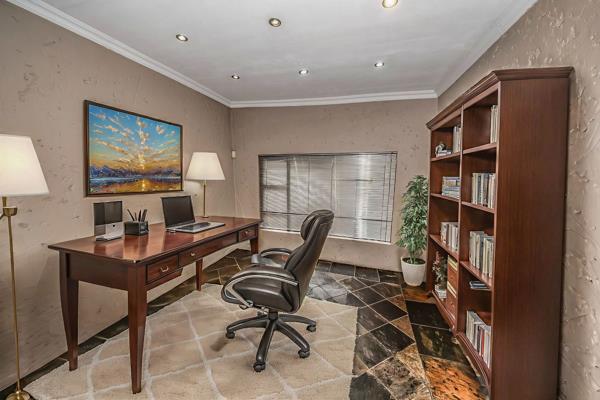 The entertainment area on the patio is a standout feature, equipped with a built-in bar and built-in braai, perfect for entertaining guests. Enjoy summer days around the swimming pool, while the spacious garden provides plenty of room for children and pets to play.