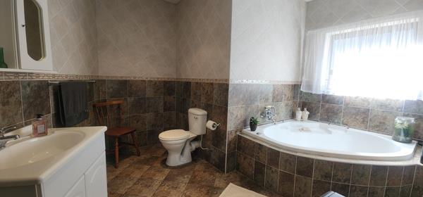 Downstairs we have 3 bedrooms, 2 bathrooms, spacious living area, dining room and kitchen, opening up to the braai area.