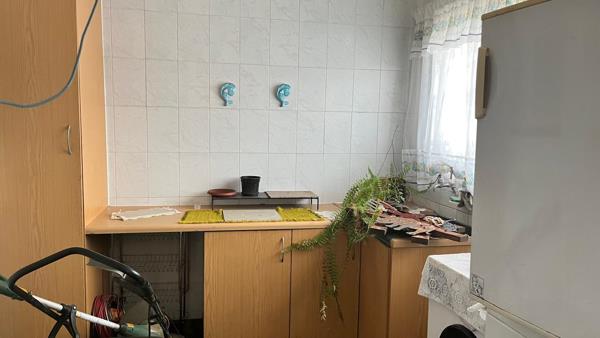* Spacious kitchen fitted with cupboards, an electric stove and eye-level oven.