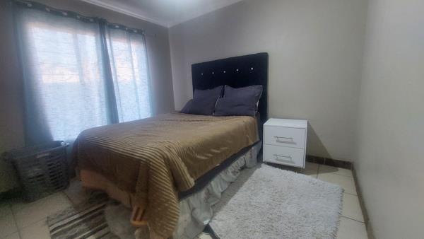 This modern two-bedroom apartment is situated in a secure, well-maintained complex. The unit offers a spacious open-plan living area flowing into a functional kitchen with built-in cupboards. Both bedrooms are comfortably sized with fitted wardrobes, and the apartment includes a neat bathroom. The complex provides added convenience and peace of mind with 24-hour security. Ideal for first-time buyers, small families, or investors