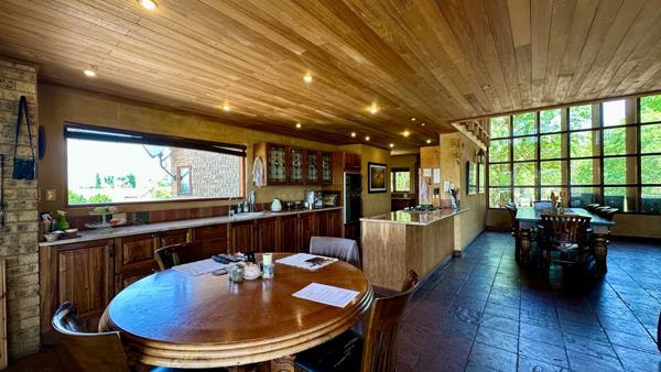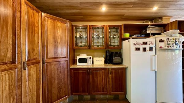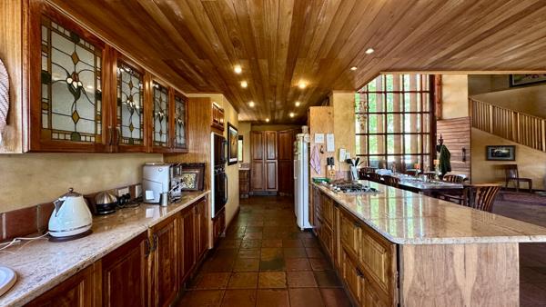 This home is unique in its design, features and finishings and was built to stand the test of time. It has five spacious bedrooms, a scullery kitchen, laundry, two living areas between both floors, dining room, a bar , wine cellar lapa and lots more. It''s a must see.