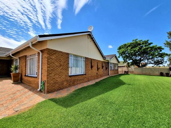 The kitchen leads to the entertainment and braai room fitted with a built-in braai (gas and wood) ample cupboards with granite tops, another fireplace in the lounge area and a guest toilet. Stacker doors leads you to a covered patio which overlooks the heated(solar), chlorinated pool(fenced) and large backyard with a lush green, healthy lawn reminding you of a park.