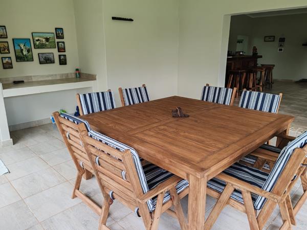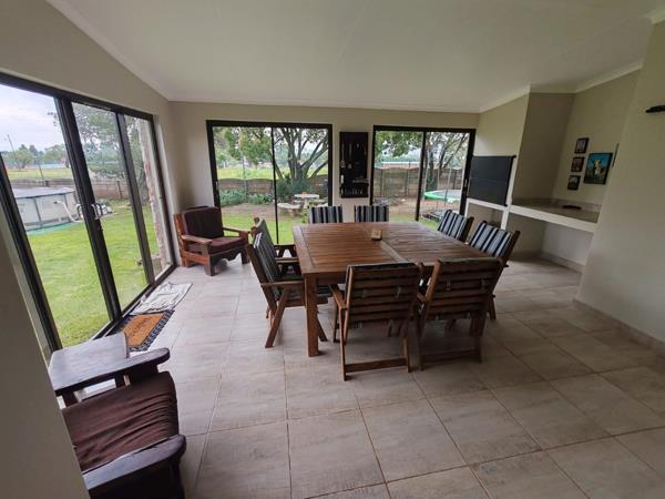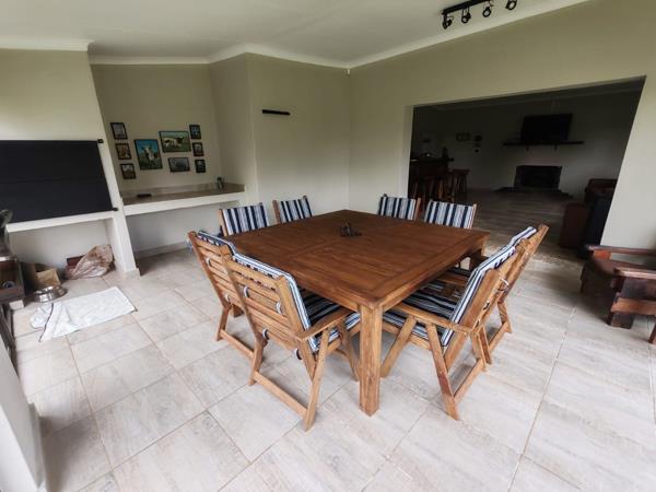 The home features four spacious bedrooms and two modern bathrooms, an open-plan kitchen perfect for hosting, and a large living area that includes a lounge and an indoor braai for year-round entertainment.
