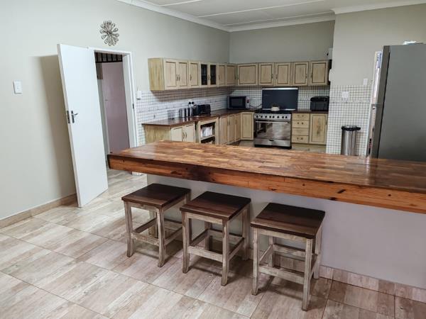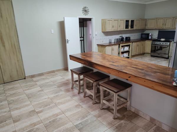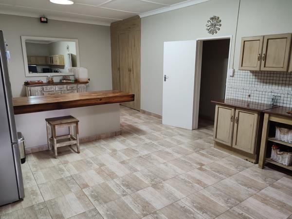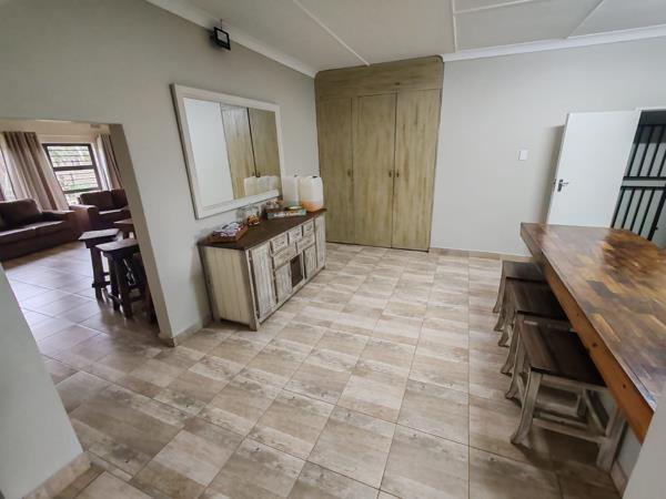The kitchen flows seamlessly into the living spaces and opens up to an entertainment area where you can host family braais, birthdays, or simply unwind on the weekends. The property also includes a double garage that provides secure parking and additional storage space.