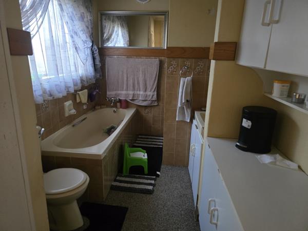 This lovely property boasts three bedrooms, including a main bedroom with a walk-in closet and a private en-suite bathroom featuring a bathtub, basin, and toilet. Bedrooms 2 and 3 are fitted with carpets and built-in cupboards, offering both comfort and convenience.