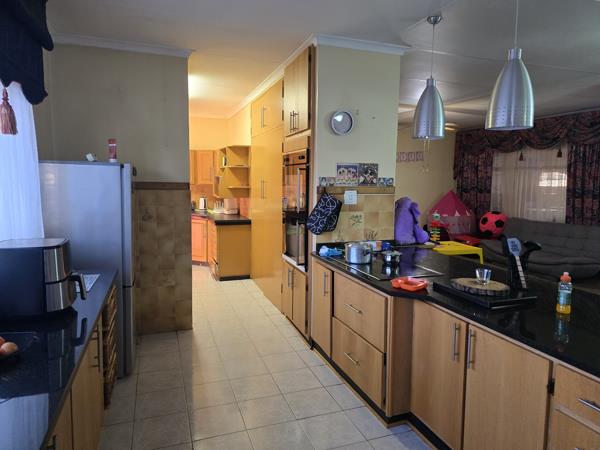 The spacious kitchen is a chefs dream, complete with ample built-in cupboards, a scullery area, and a central island stove ideal for cooking and socializing. The home includes a comfortable lounge with floor heating, and a versatile dining and TV room currently being used as a kids play area.