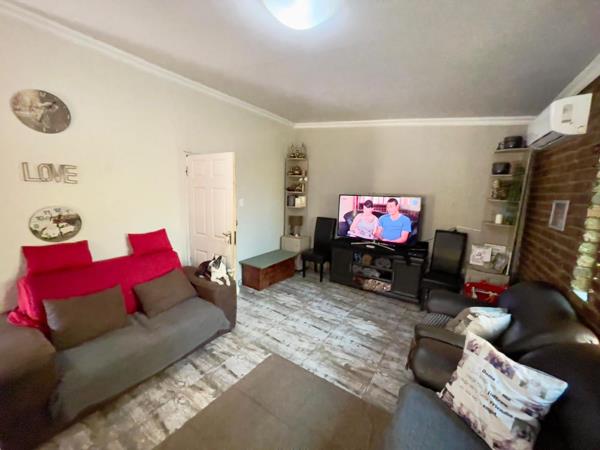 The main house includes three bedrooms, each fitted with modern melamine built-in cupboards, offering ample storage. The home features two bathrooms, with the master bedroom enjoying the privacy of an ensuite. For outdoor entertaining, there is a lovely patio area complete with a built-in braai (barbecue), ideal for socializing and dining al fresco. The main house is also equipped with gas geysers for efficient water heating and a 5 Kva inverter solar system, ensuring energy efficiency and reduced utility costs.