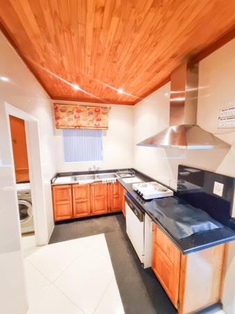 Modern kitchen with granite tabling and workspace, electric stove and oven, 4 plate gas stove