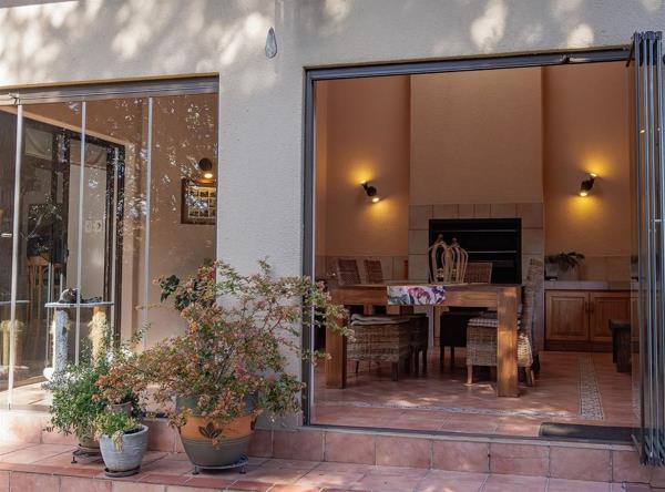 Stackable glass doors overlooking the beautiful garden.